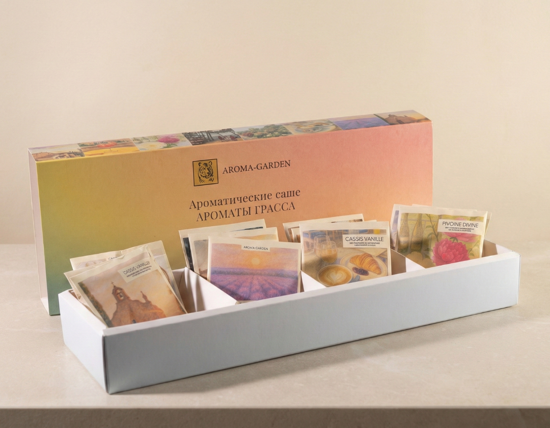 AROMA-GARDEN - это производство ароматических саше с более чем 86 ароматами в 8 коллекциях. Мы специализируемся на индивидуальных заказах - от 1500 до 1500 000 штук, под вашим брендом с уникальным дизайном и ароматом.