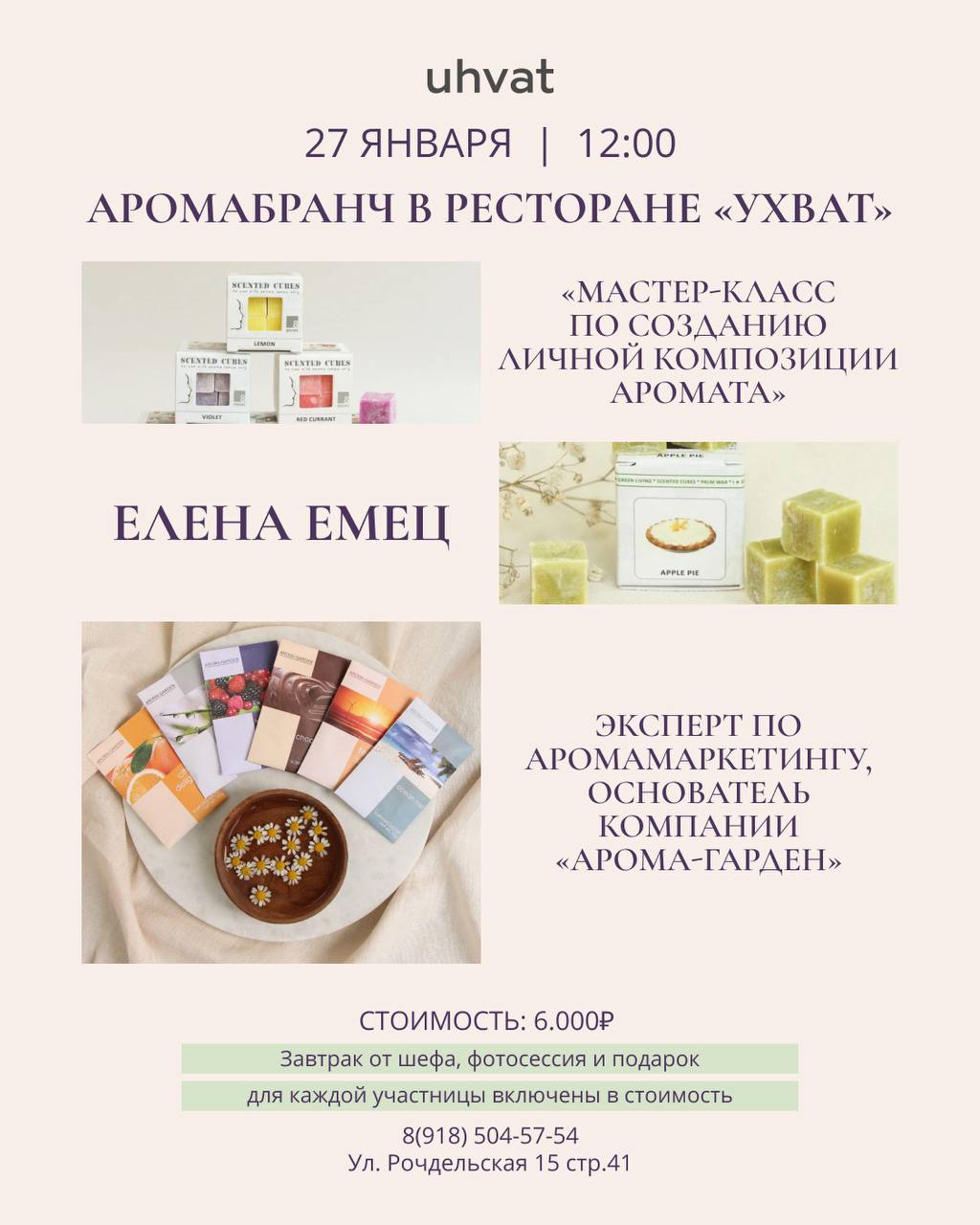 27 января в 12:00 мы проводим уникальное мероприятие в ресторане «Ухват» - бранч с мастер-классом по созданию личной композиции аромата.